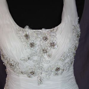 This dress is a sample dress from a high end bridal salon. Due to the nature of sample gowns, some wear may have occurred on the dress due to brides trying it on in the store. Overall, this dress is in very good condition with no noticeable issues.