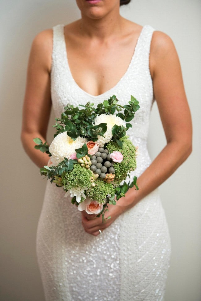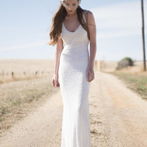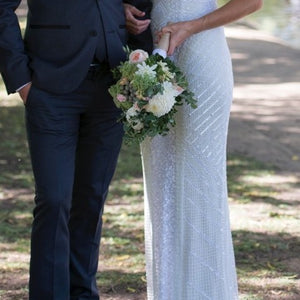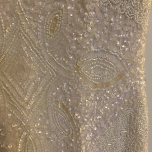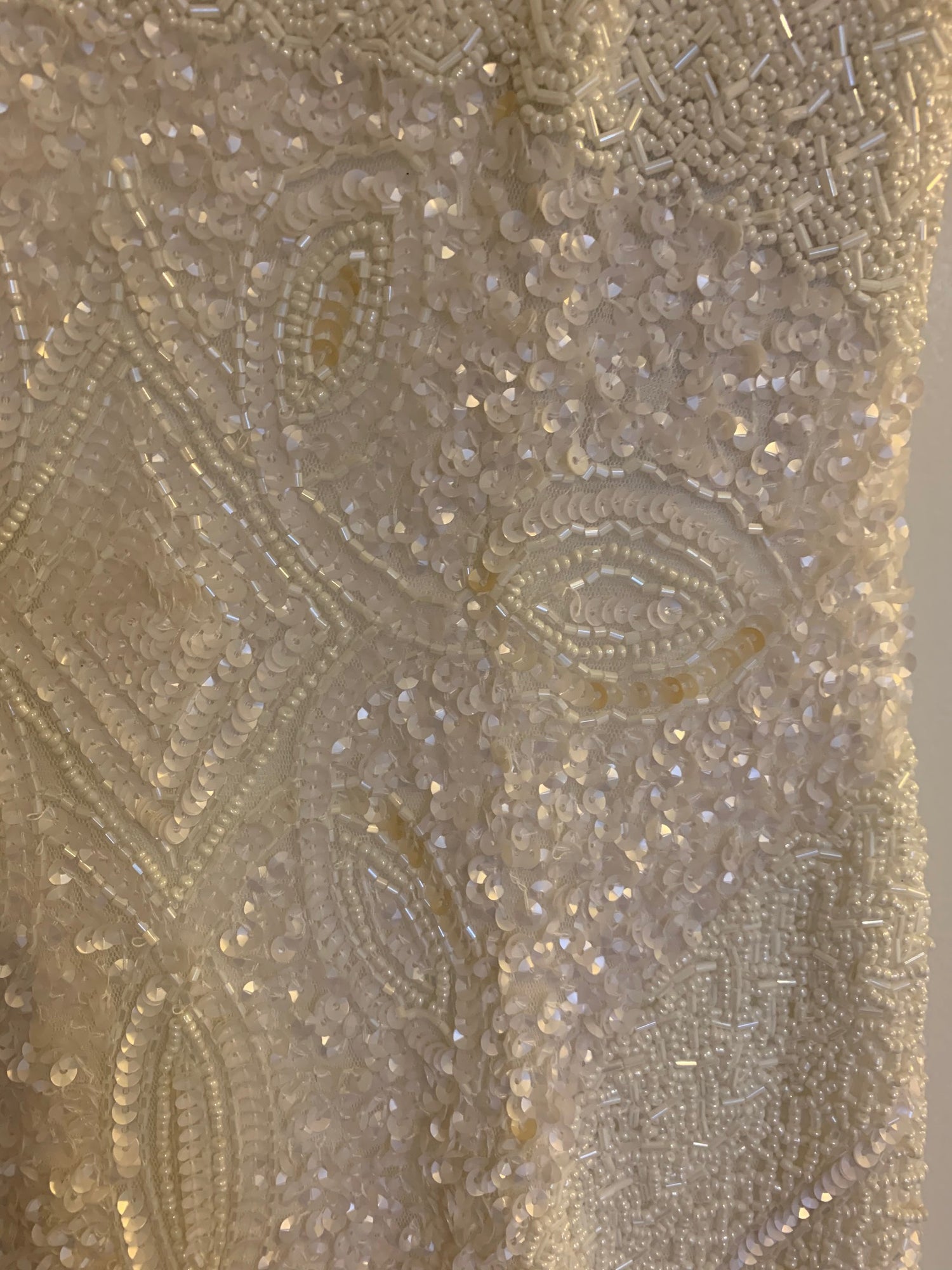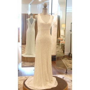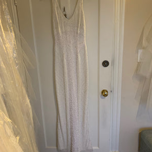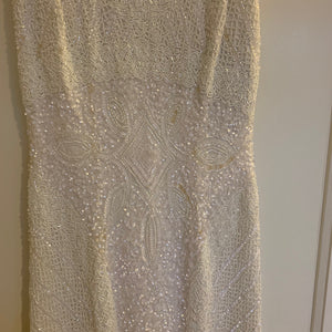 Brand new, with tags, never been worn! Please note, this dress has some defects. Some of the beads have a slight yellow-ish color to them. See last 4 pictures. The color is only noticeable when looking up close - not from far away. The beads can be individually removed as well. The price has be drastically reduced because of this imperfection. Feel free to message me if you have other questions. It is on Final Sale because of the low price. Retail price: $1,250.