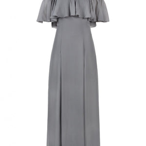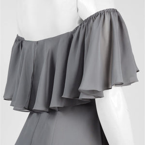 Monique Lhuillier Off the Shoulder Chiffon Gown - Steel Gray