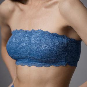 - Entire bandeau bra is made of beautiful, lined lace with dainty scalloped edges.