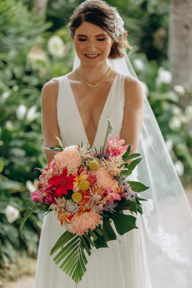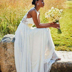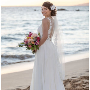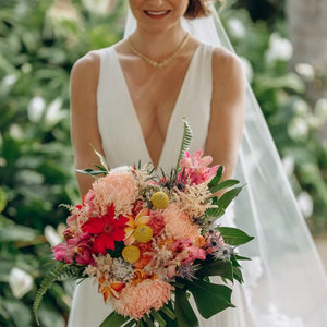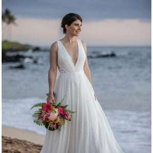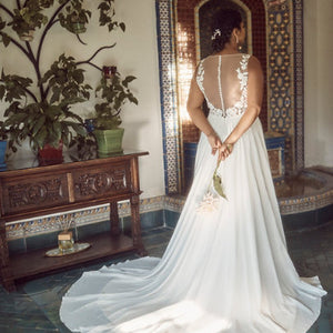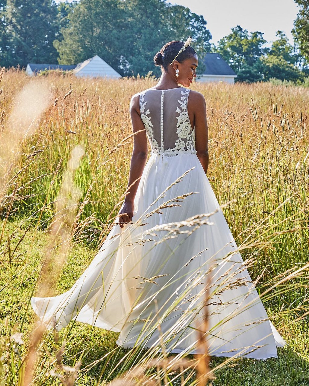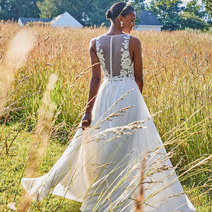 - Not bra friendly; additional bust support can be added by an expert bridal tailor