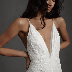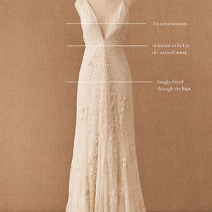 - Not bra friendly; additional bust support can be added by an expert bridal tailor