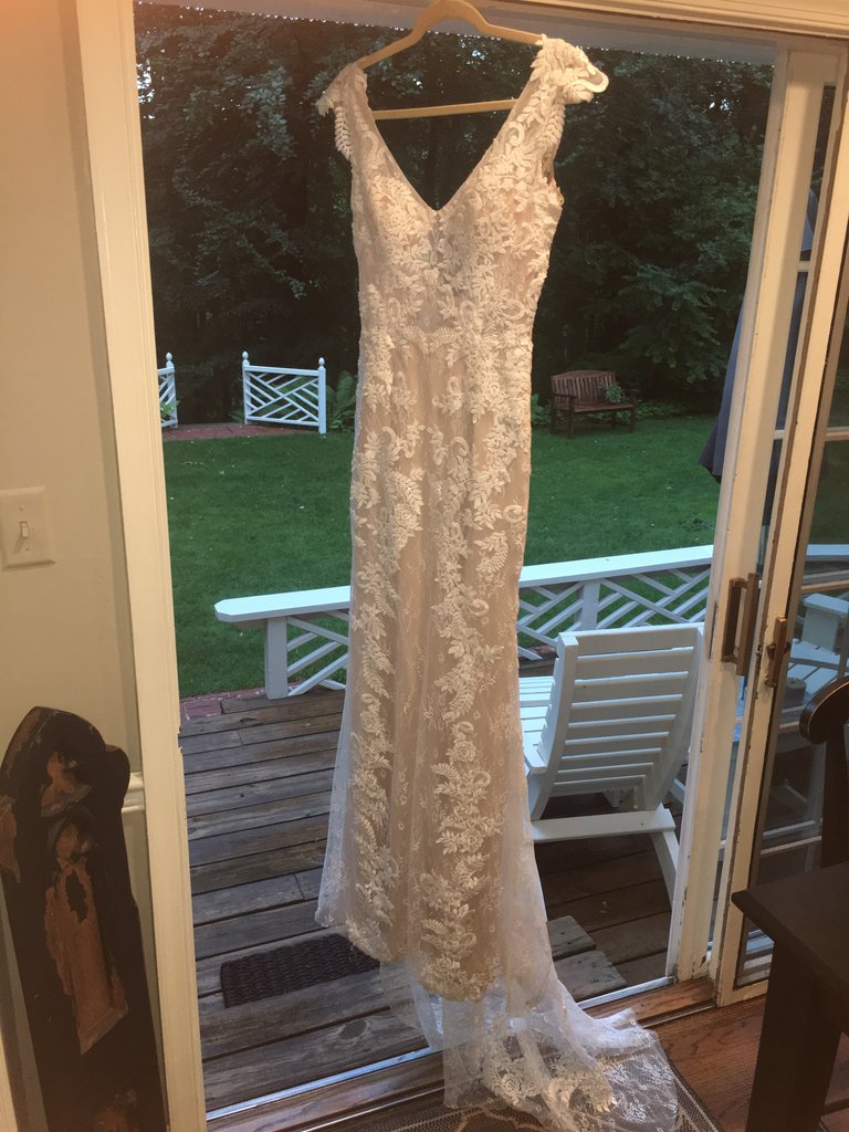 Size 2, 4, 8, 12 and 22. Color: Ivory / Nude - Unlined. Has been tried on in store, but overall in excellent condition. Retail price: $1,490.