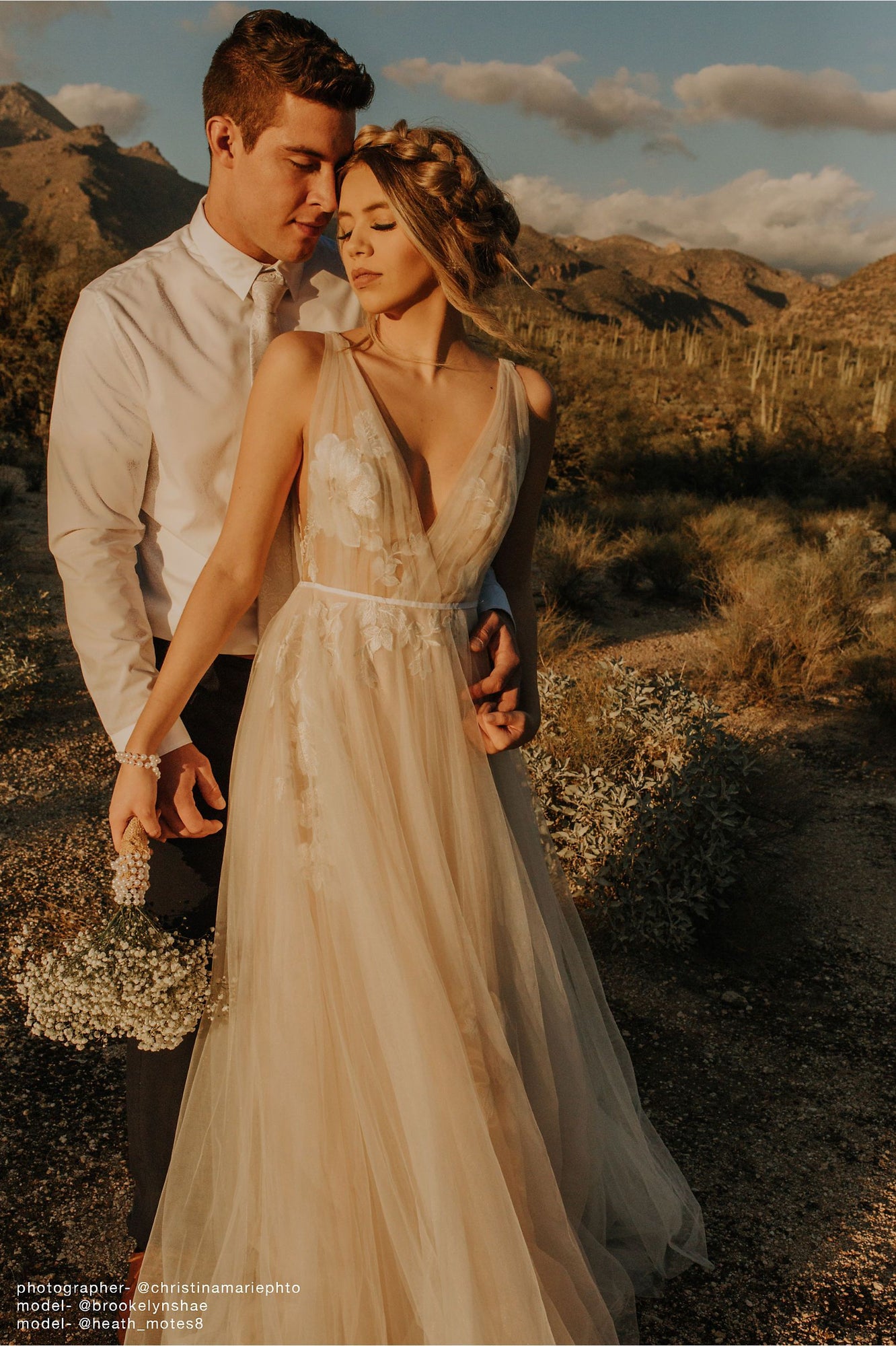Willowby by Watters Lainie Gown is an ethereal A-line gown of illusion tulle over Wildfeld lace. Lace appliques peek through layers of soft tulle. The bodice is complete with a plunging neckline and low back for a sultry edge.