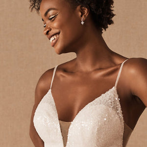 - Not bra friendly; additional bust support can be added by an expert bridal tailor