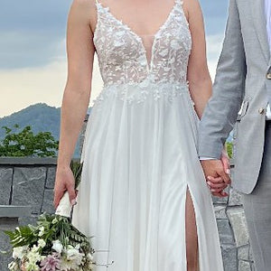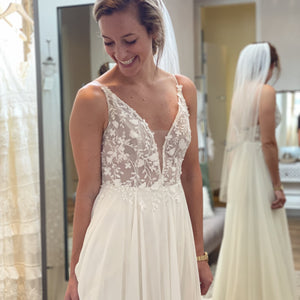 Size 2 and 4. Has been tried on in store, but appears to be in excellent condition. Minor dust along the hemline. Never worn outside the bridal salon and never altered. Current style. Retail price: $1495.