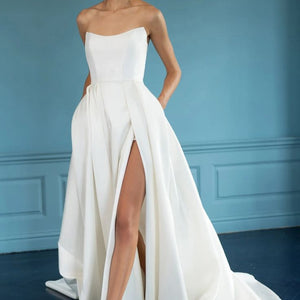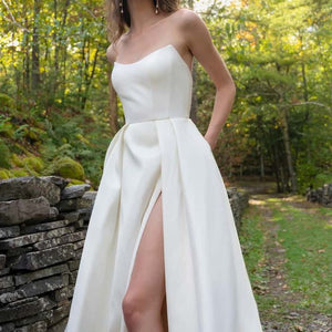 - Strapless scoop neckline