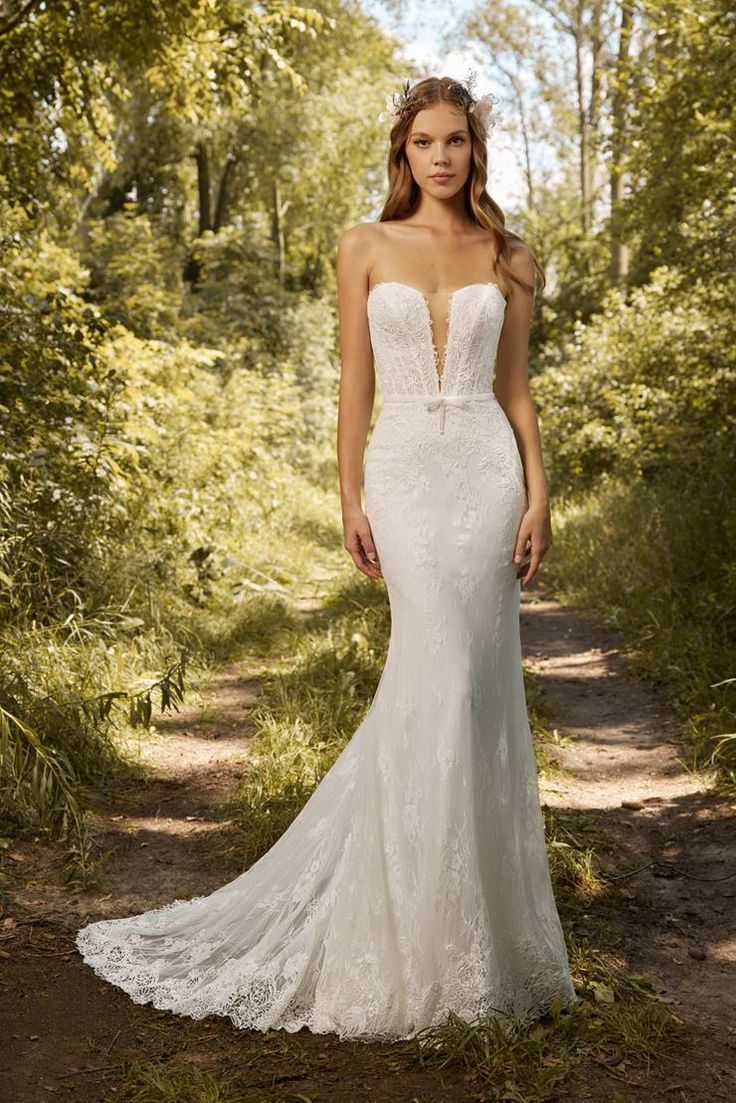 Ideal for brides who desire a blend of classic beauty and contemporary style, Rumi is your dream dress come true. With intricate lace from top to bottom and a form-fitting bodice that accentuates your natural curves, Rumi helps you to exude classic elegance.