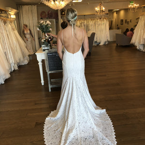 This gown has been tried on in store, but appears to be in like new condition. Retail price: $2,200.