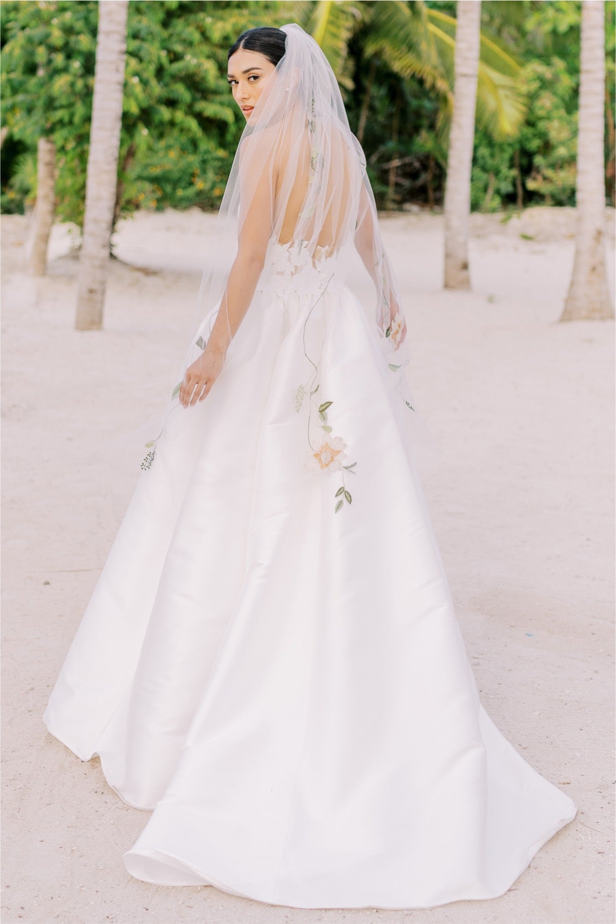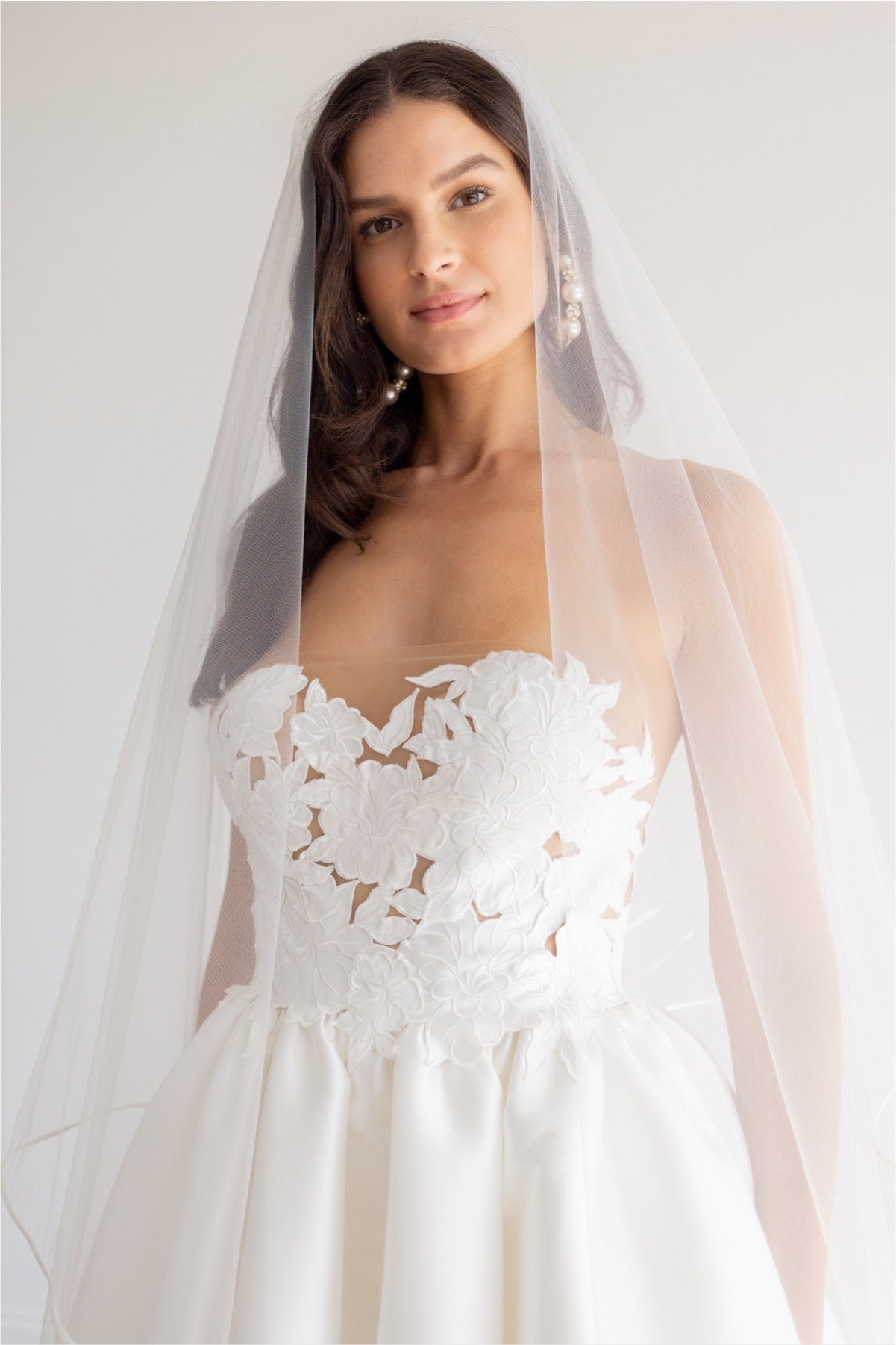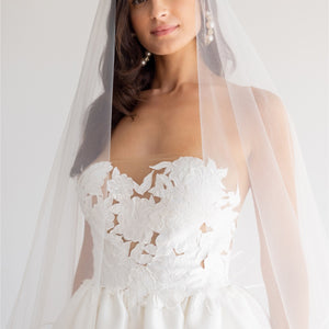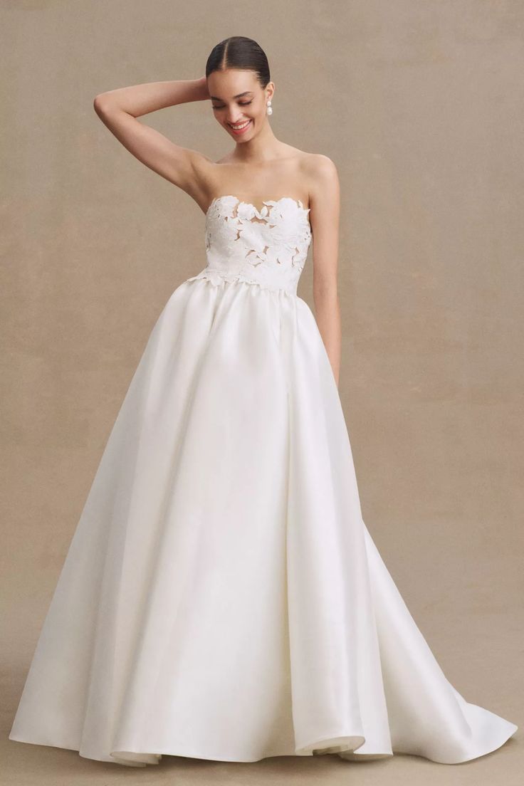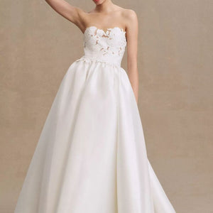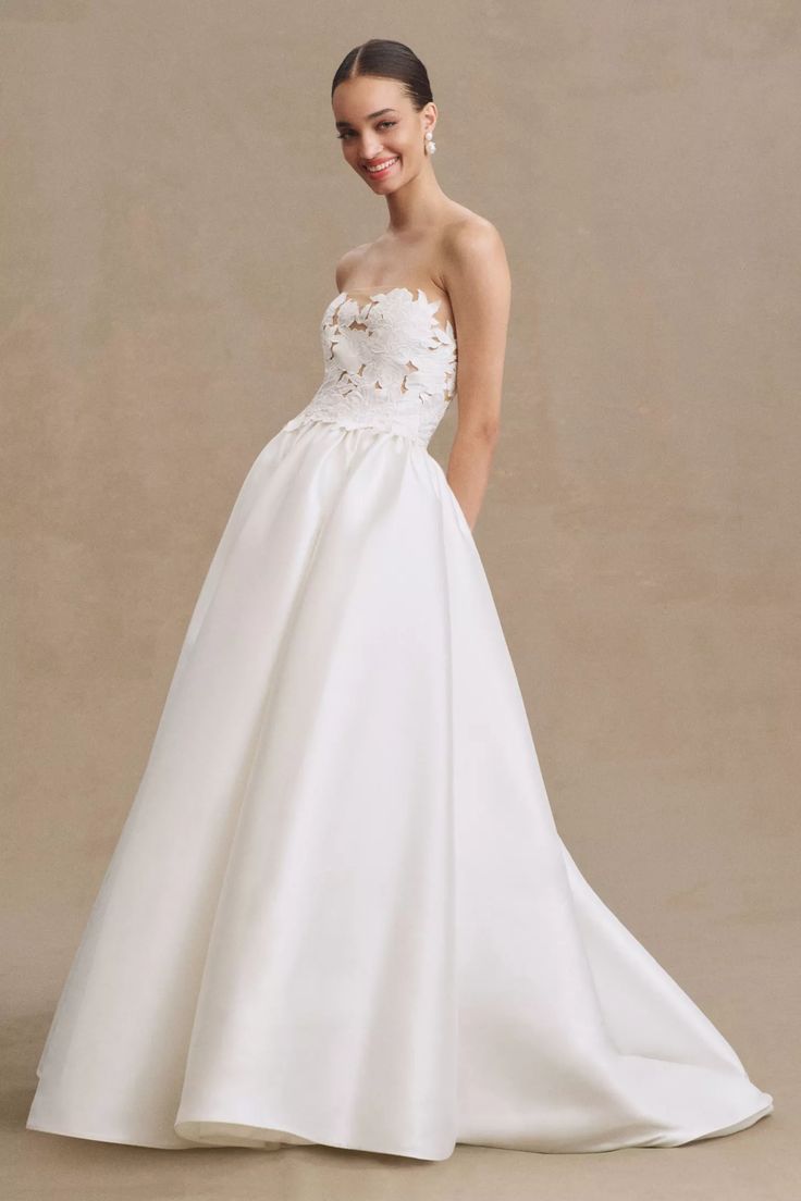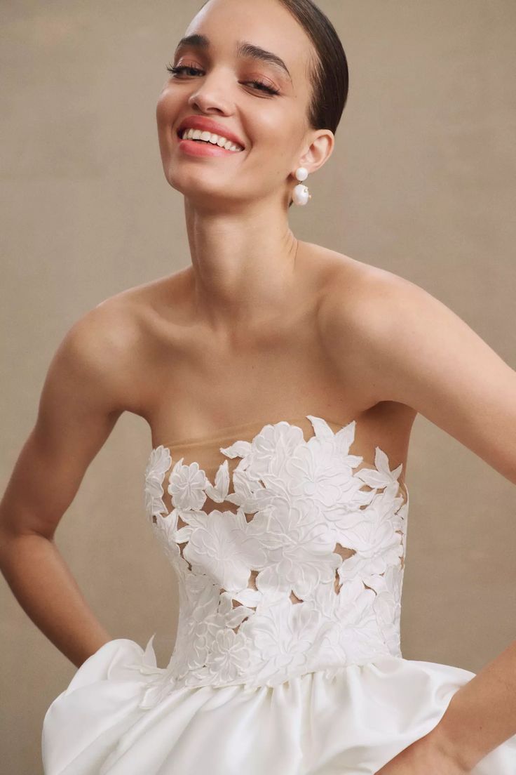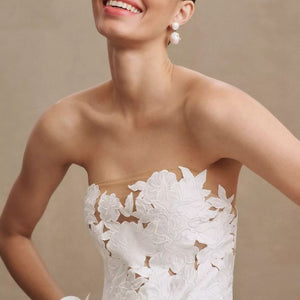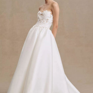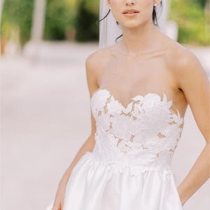- Strapless cutwork bodice with mesh underlay