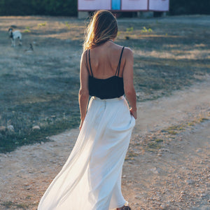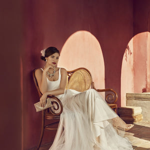 Fall blissfully in the love with the exquisitely luxurious and timeless Anika Skirt. Cut from Catherine Deane's signature draped silk tulle, the skirt naturally falls from the silk satin waist line perfectly to the floor so you can just dance into the night!