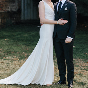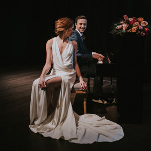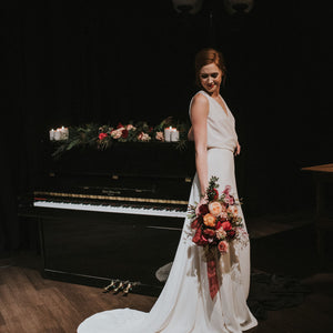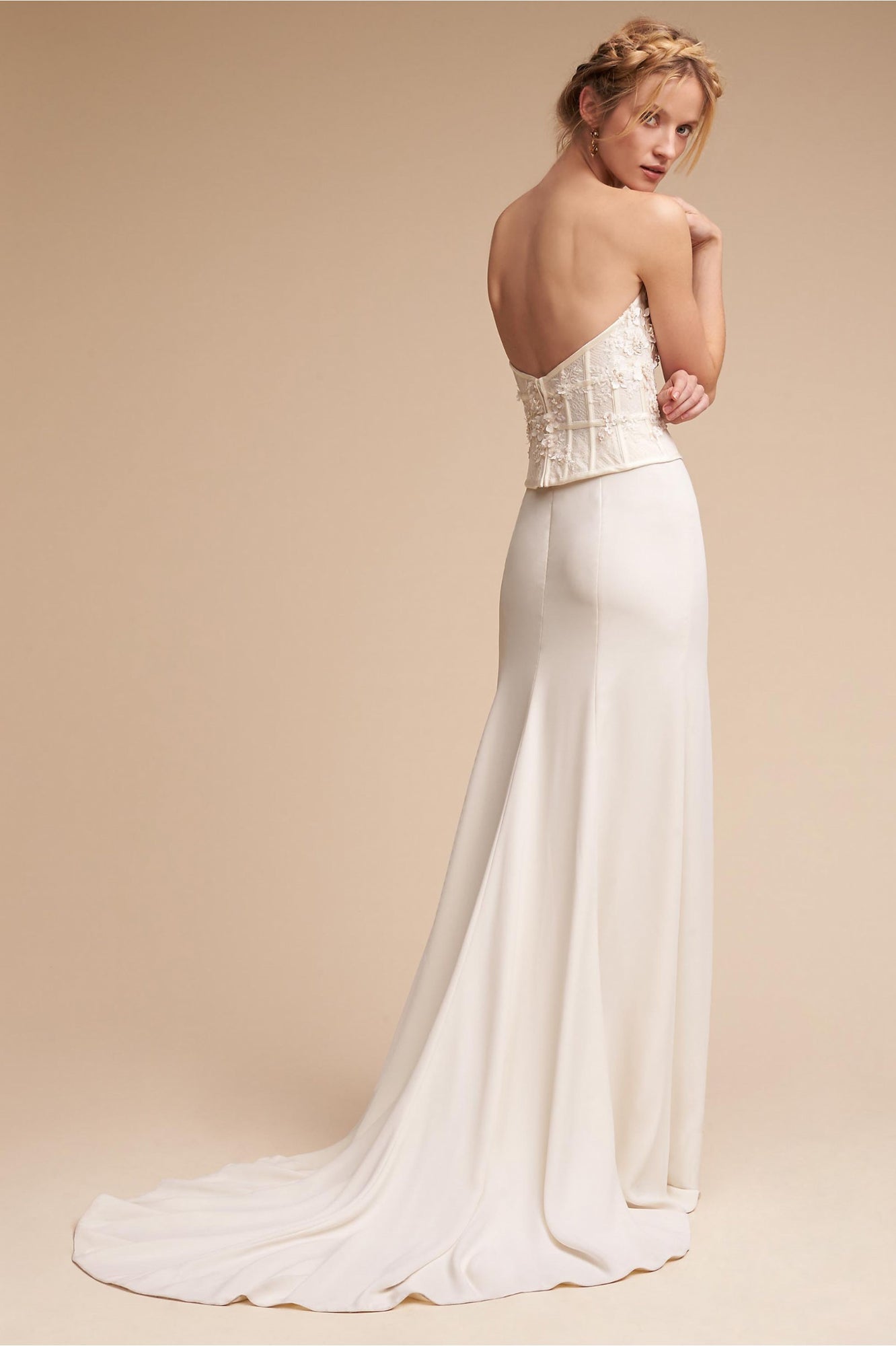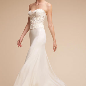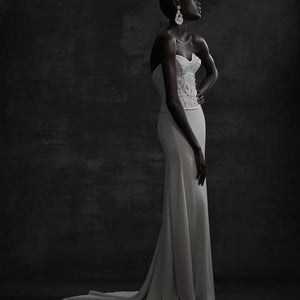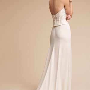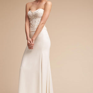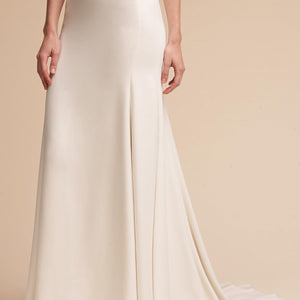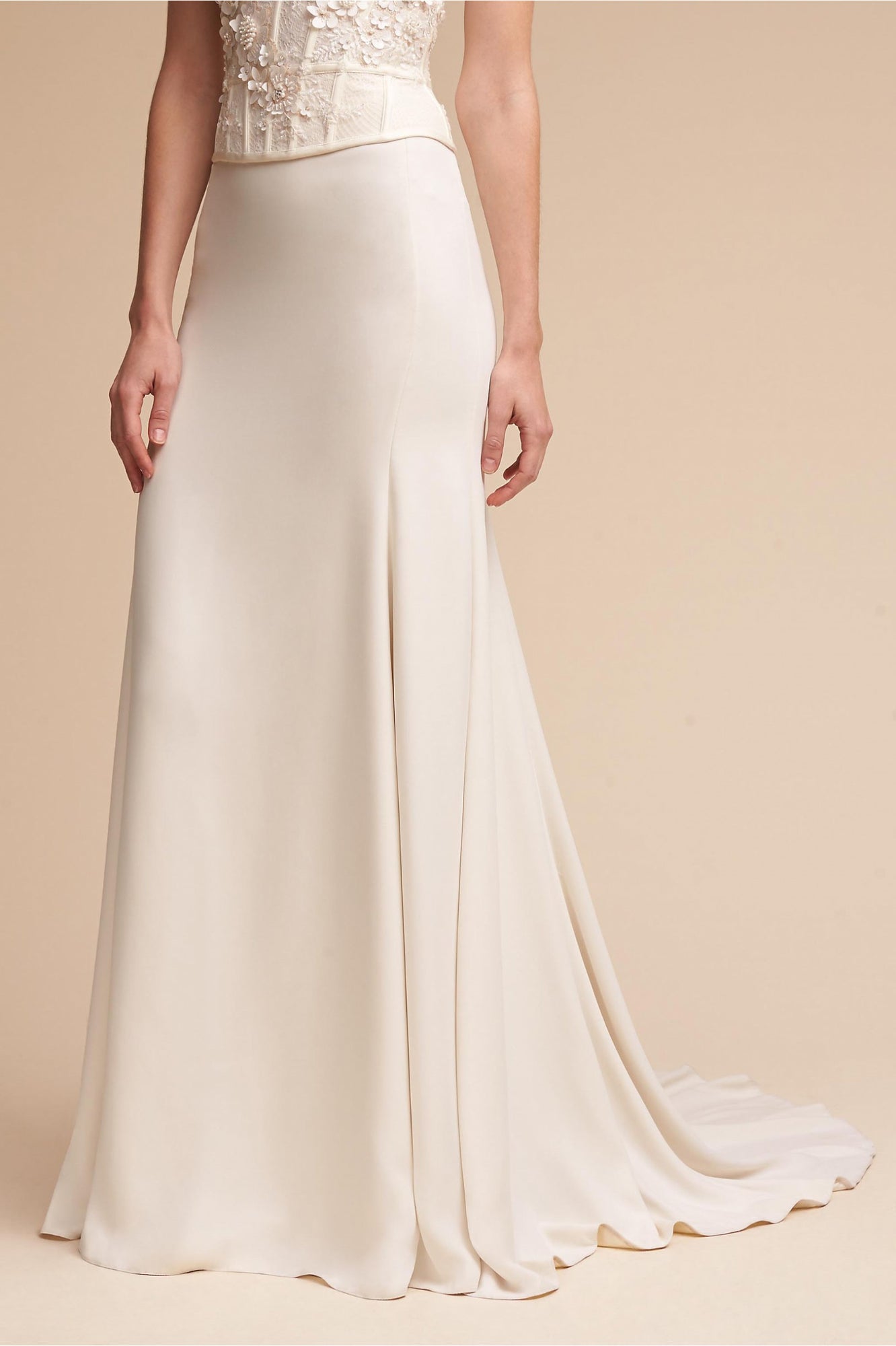 The Nikkie Skirt was made for movement. Featuring chic Georgette with Stretch Poly Charmeuse, this skirt can easily pair with a variety of tops and corsets for a wedding-day look that you can call your own. Beautiful, buttery crepe flows from the hip in this relaxed column skirt. A subtle sweep train adds an extra dose of glam. By Willowby by Watters.