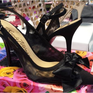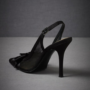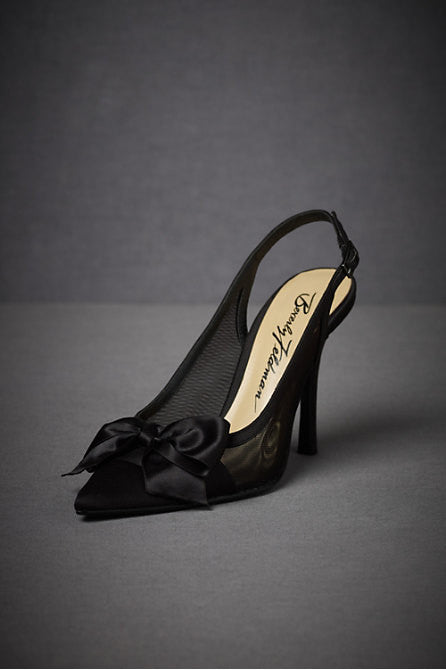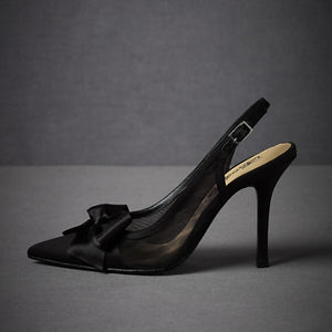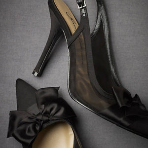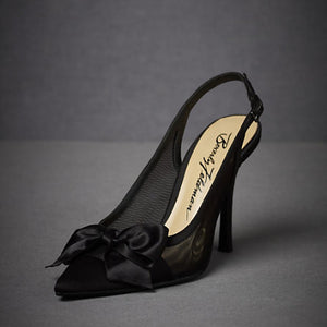 Smoky, subdued mesh gives its well-turned-out satin bow counterpart center stage.