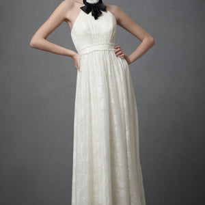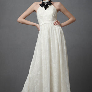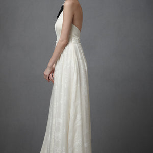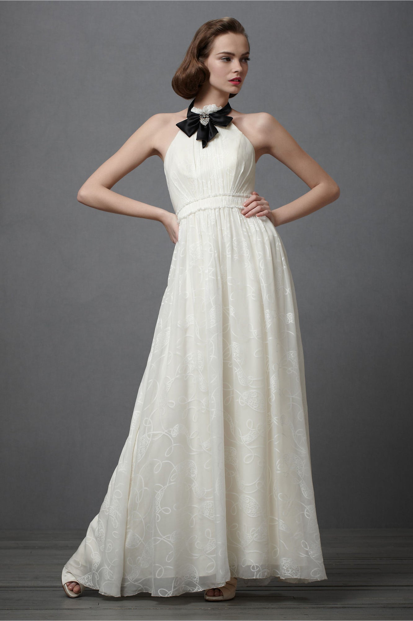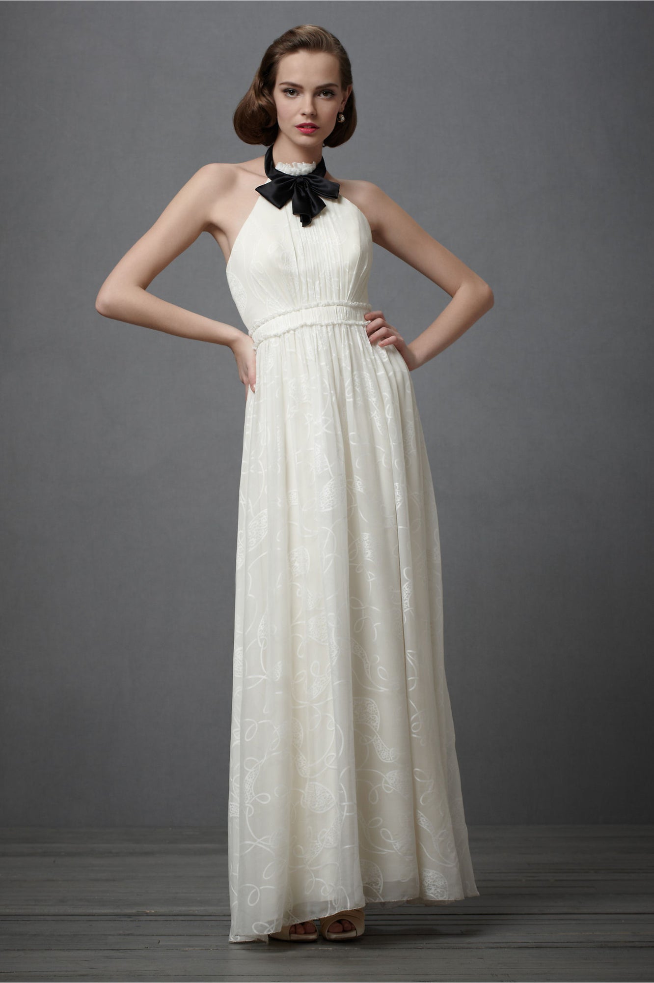 Make a statement in this BHLDN dress! Graphic black and white colors adorn this seasons hottest dresses. A script of glowing swirls dances across Va Et Vien's Parisian-inspired dress, a mix of expert tailoring and beautiful fabric. Its skin-barring back is balanced by neat and tidy pintucks on the front of the bodice that zip from waist to silk necktie.