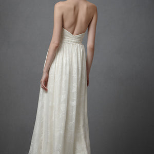 From the makers of Va Et Vien, designed exclusively for BHLDN. Side zip and button closure. This silhouette is fitted through the bodice. Boning and bust cups. Silk and cotton shell. Silk lining.