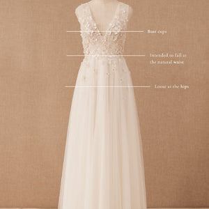 - Not bra friendly; additional bust support can be added by an expert bridal tailor