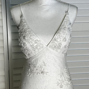 Size 6. Approximate measurements are: Bust 36", Waist 28", Hips 38".
