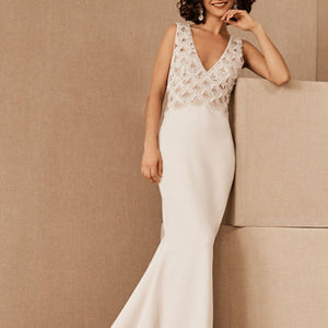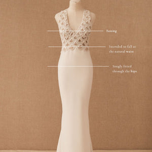 - Not bra friendly; additional bust support can be added by an expert bridal tailor