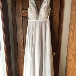 Size 6. Brand new, with tags, never worn! Does not come with sash (any sash would love beautiful with this gown!). Retail price: $1.050!