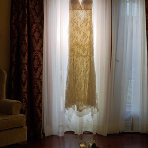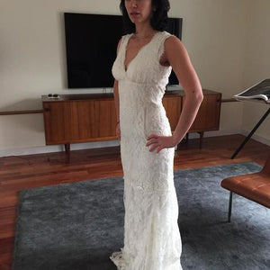 - Condition: Sample (minor loose threads). Gown has never been altered
