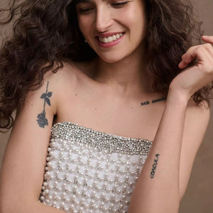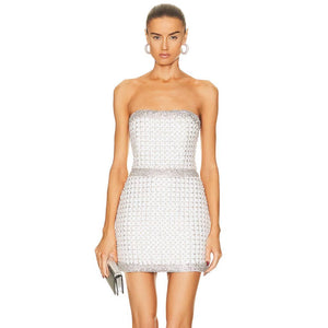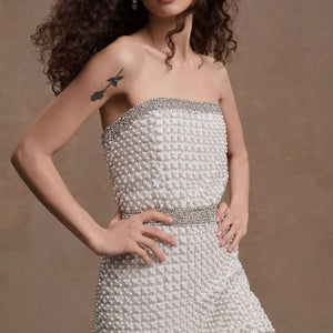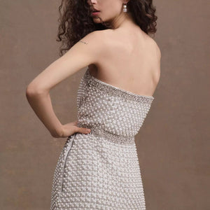 Make a statement for your reception or a special night out with Retrofete's Heather mini dress, a vision in allover faux pearls and glittering rhinestones. With a strapless neckline and a mid-back hem, every entrance will be memorable in this exquisite style. For a delicate and decidedly feminine moment, turn to the Heather Pearl Dress. A classic strapless mini with a fresh embellishment, this style features intricately hand-embellished pearls throughout complemented by a crystal beaded trim at the neck, waist, and hem. Color: White/Silver.