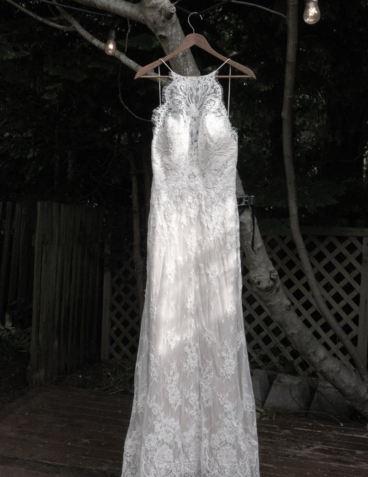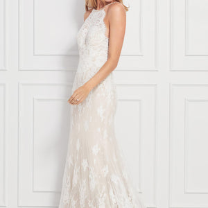 You only get one chance to make a grand entrance, so a dress of head-to-toe corded Alencon Lace with a plunging back pretty much covers it, we think. By Wtoo by Watters. Color: Ivory.