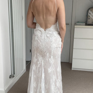 Size 12. Sample gown that has been tried on in store, but in like-new condition. No noticeable signs of wear. Retail price: $1,257.