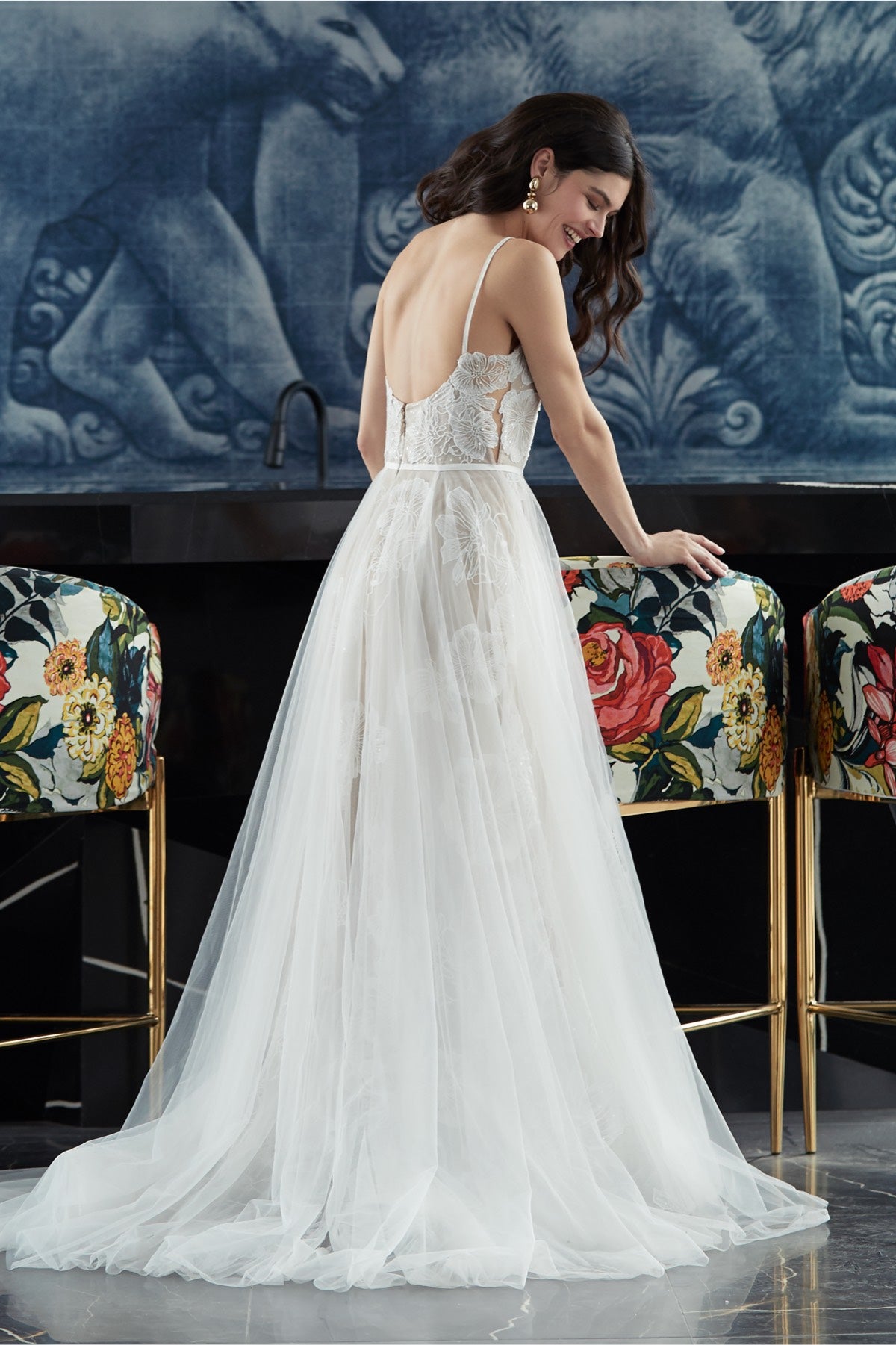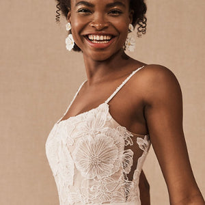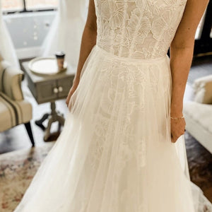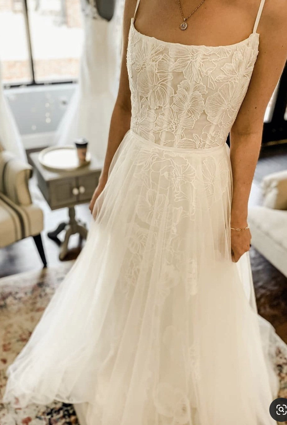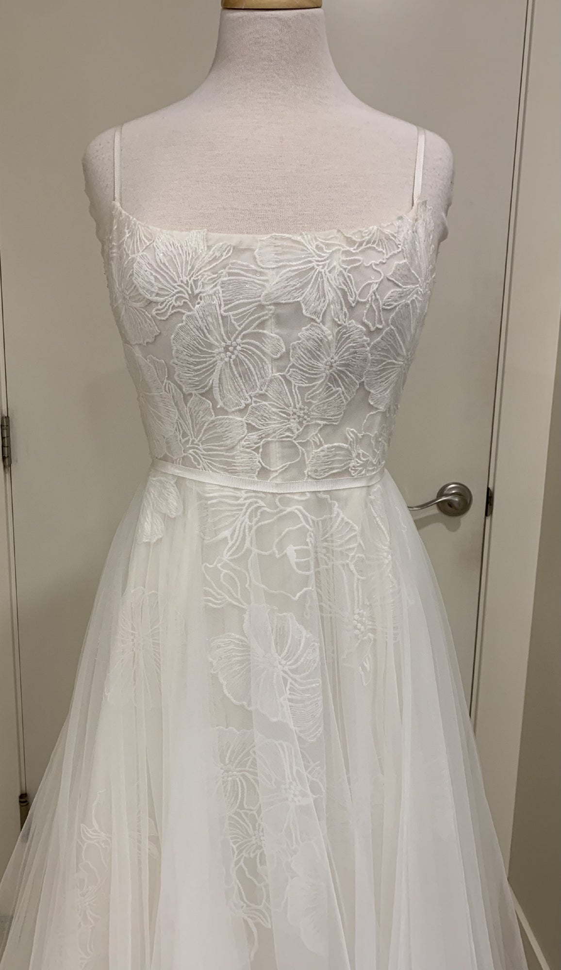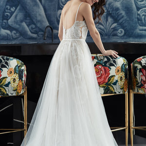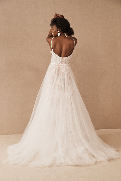 • Not bra friendly; additional bust support can be added by an expert bridal tailor