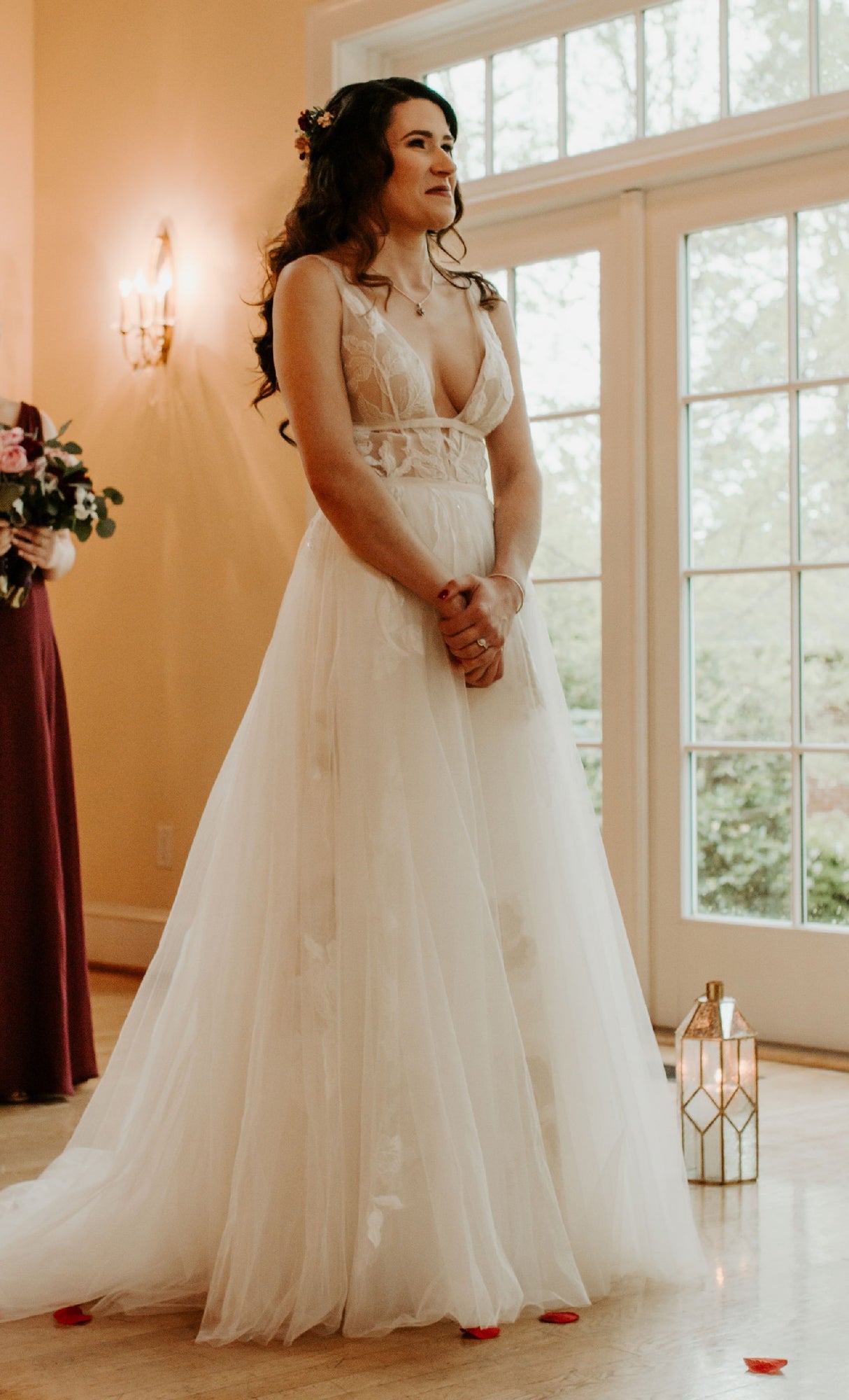 - Not bra friendly; additional bust support can be added by an expert bridal tailor